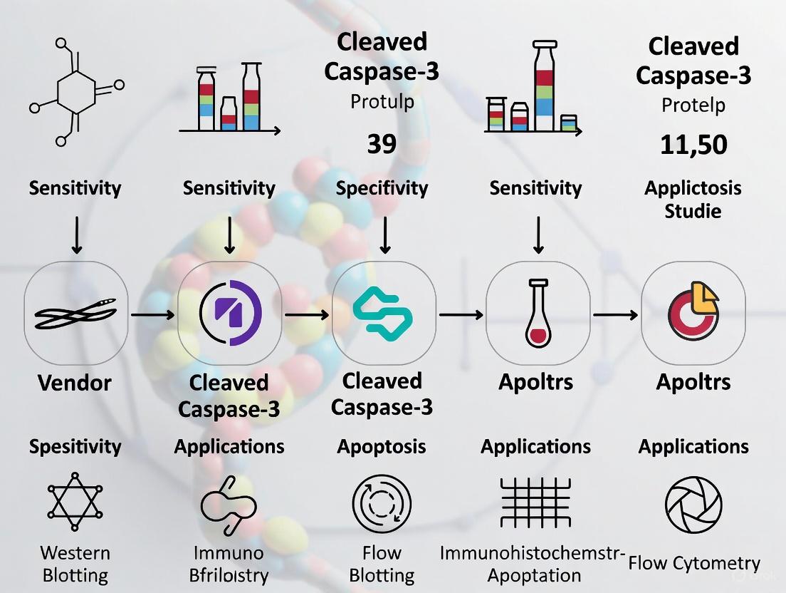 This article provides a detailed comparative analysis of cleaved caspase-3 antibodies from leading vendors, tailored for researchers, scientists, and drug development professionals. It covers the foundational biology of caspase-3 and its emerging non-apoptotic roles in processes like oncogenic transformation. The guide delivers practical methodologies for key applications such as Western Blot, IHC, and Flow Cytometry, alongside troubleshooting and optimization strategies for common experimental challenges. A core component is the rigorous, data-driven comparison of antibodies from vendors including Cell Signaling Technology, Proteintech, and Thermo Fisher, evaluating specificity, reactivity, and validation data to empower informed reagent selection for biomedical research.