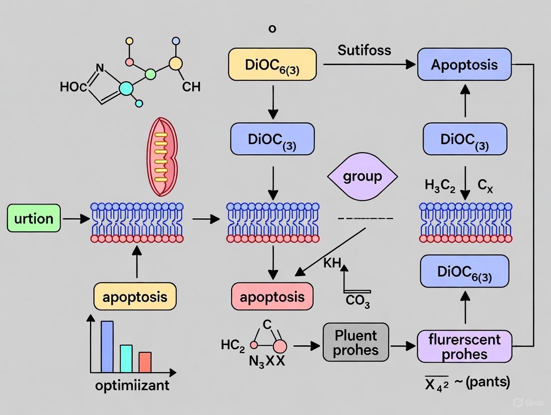 | Protonophores (CCCP, FCCP) | Mitochondrial depolarizing agents. | Used as experimental controls to validate that DiOC6(3) fluorescence loss is due to collapse of the mitochondrial membrane potential. |