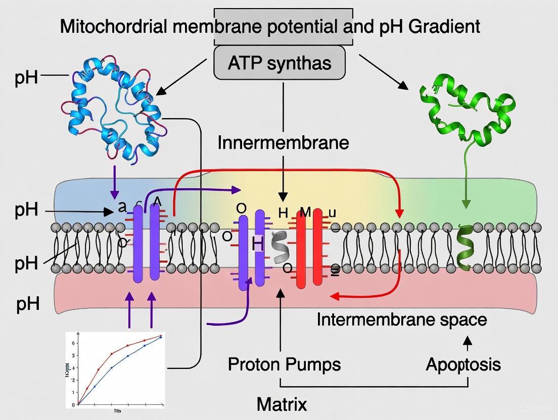 Functional interactions between key IMM proteins fine-tune PMF utilization. Real-time imaging of mitochondrial matrix pH has demonstrated that the ADP/ATP carrier (AAC) and ATP synthase coordinate to regulate H+ fluxes [8]. Activation of AAC-dependent H+ transport induces matrix acidification followed by a re-alkalization phase mediated by reverse activity of ATP synthase, revealing a feedback mechanism for maintaining PMF homeostasis [8]. Disruption of this delicate balance underlies pathological PMF dysregulation, which can manifest as either excessive PMF generation leading to oxidative stress or collapsed PMF resulting in bioenergetic failure.