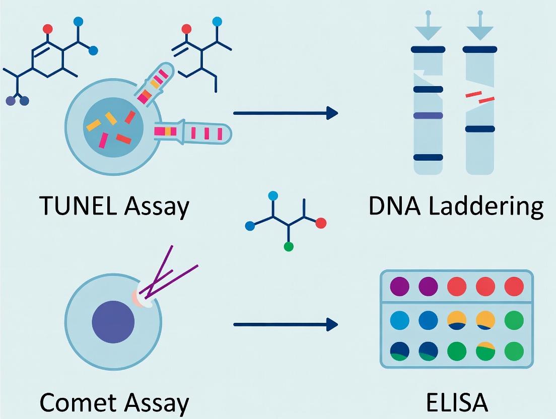 | Comet Assay (Alkaline) | Detects single and double-strand DNA breaks via electrophoresis. | Genotoxicity and general DNA damage. | Low. Detects any DNA break. | Very High (single-strand break level). | Non-specific; cannot differentiate apoptosis from other DNA damage. |